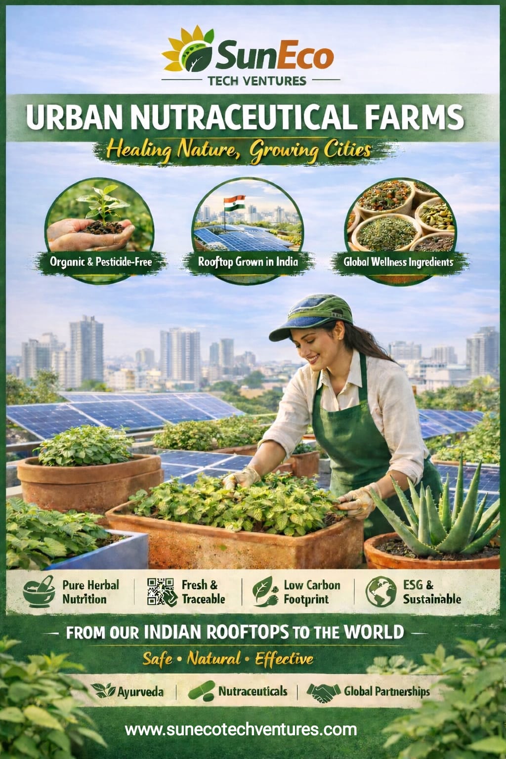 Position yourself with SunEco Tech Ventures global urban Nutraceuticals network. “Indian Rooftops to Global” – SunEco Tech Organic Production of Nutraceutical Plants on Rooftops…